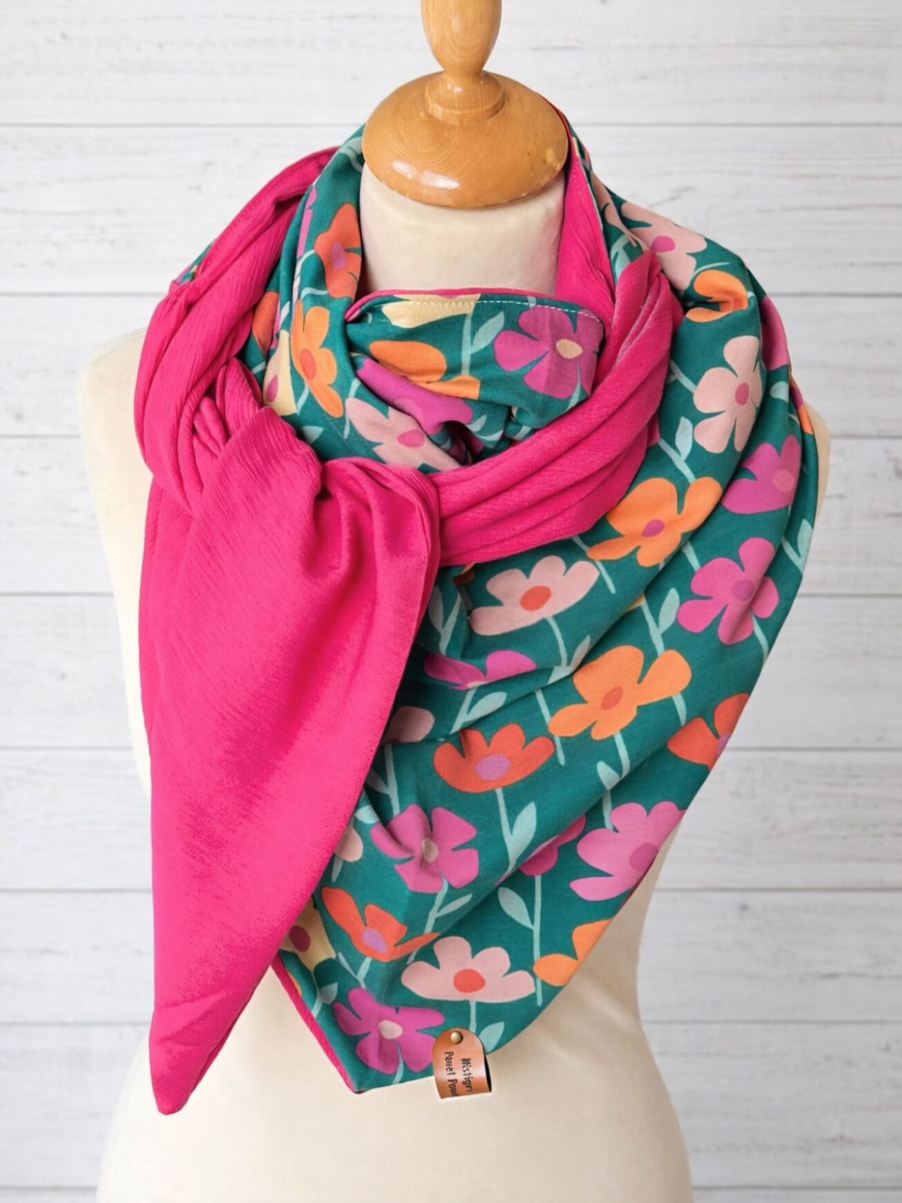 Foulard adulte en jersey et crepe, léger, idéal pour les beaux jours.  Réversible
