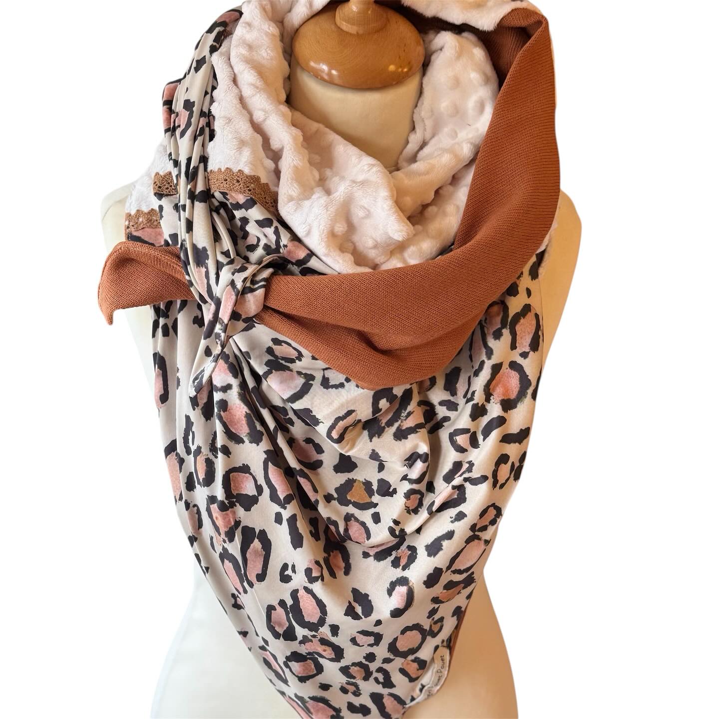 foulard xxl composé de trois tissus, effet bien couvrant et réversible