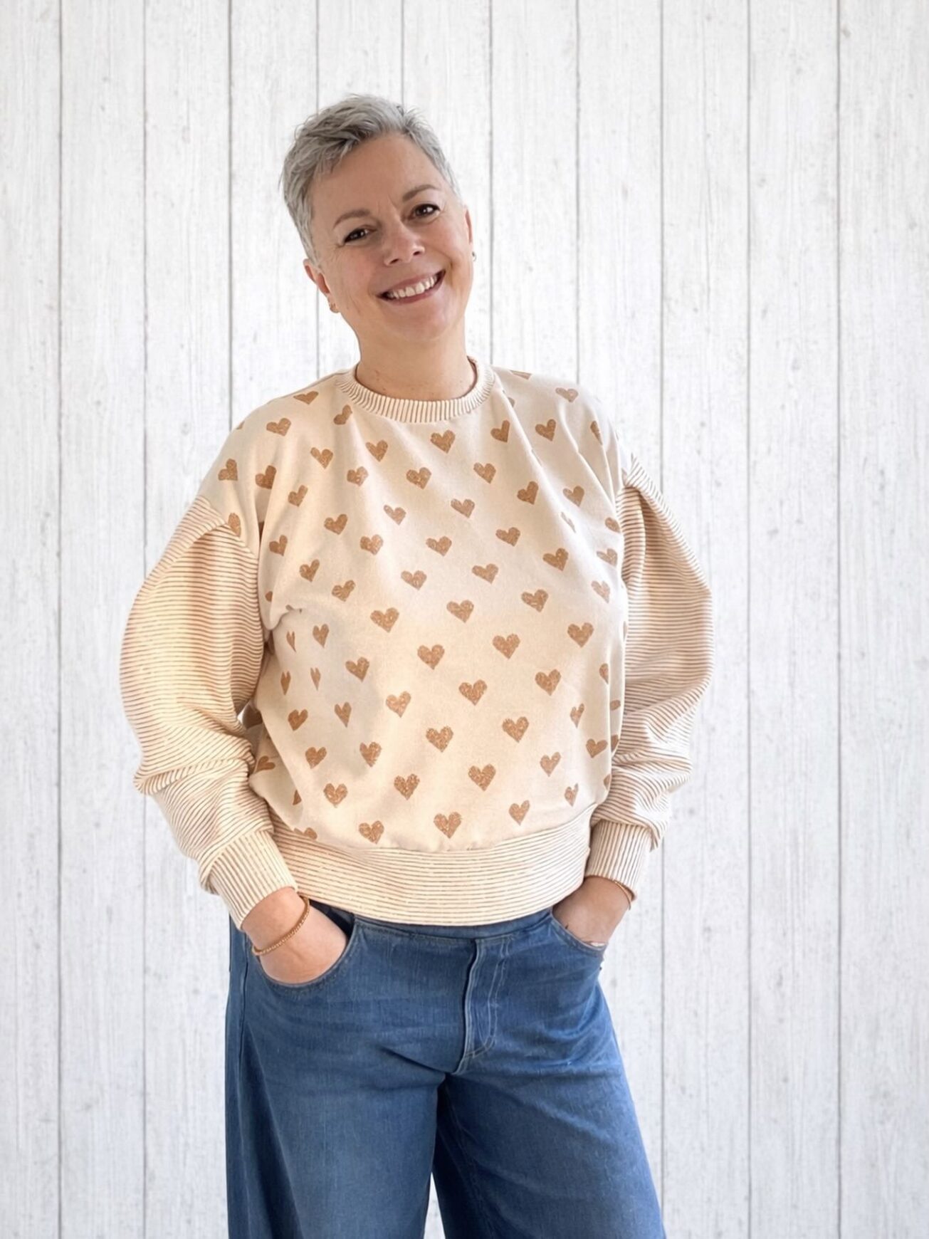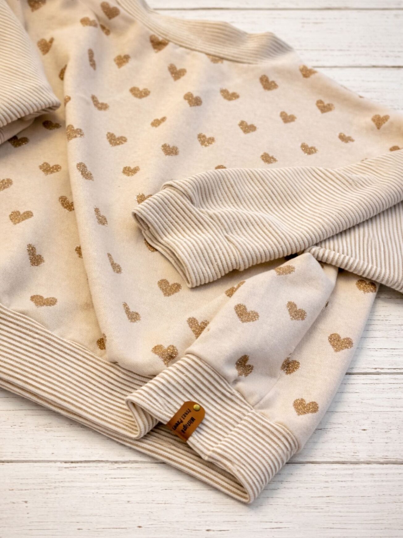 Sweat avec coeurs et lignes dorés, manches originales